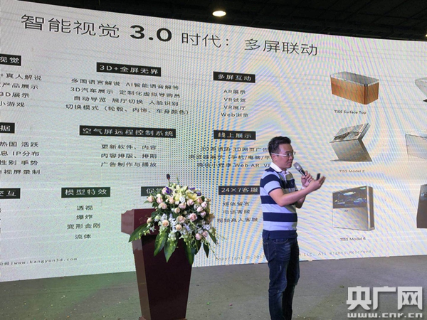 當(dāng)前先進(jìn)、不斷迭代的3D“黑科技”產(chǎn)品正以飛速的步伐深入各個(gè)產(chǎn)業(yè),在不久的將來,當(dāng)眼見的所有事物3D化,真正進(jìn)入到視覺智能3.0時(shí)代時(shí),人人都能感受到這一波“黑科技”所帶來的震撼,以及給生活帶來的便利。在展會(huì)現(xiàn)場,康云科技向觀眾展示了汽車多維視覺智能服務(wù)平臺(tái),在一塊虛擬屏幕前,通過體感、手勢、觸摸、眼球移動(dòng)等多種方式與TISS屏內(nèi)容交互,用戶在線如身臨其境地看車、選車,360度全景查看汽車內(nèi)飾,若想看汽車輪轂、內(nèi)飾、車身顏色等,也能自由切換……據(jù)悉,目前這一套新系統(tǒng)已在廣州4S店落地應(yīng)用,它可實(shí)現(xiàn)人工智能3D科技與汽車銷售完美融合?!斑@套黑科技仍然是基于智能3D掃描技術(shù),將線下實(shí)體的展廳、汽車等進(jìn)行掃描,導(dǎo)入服務(wù)器建模渲染。”專家認(rèn)為,智能系統(tǒng)針對(duì)汽車的特性,加入360度全景汽車內(nèi)飾查看,并且加上人臉識(shí)別、智能導(dǎo)購等模式,VR展示與VR試駕體驗(yàn),用空氣屏承載的多維視覺展示途徑,促進(jìn)用戶與產(chǎn)品更好互動(dòng)。
