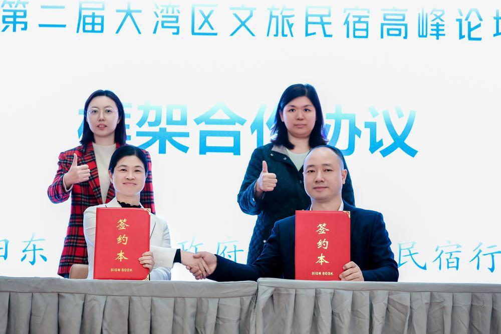 陽(yáng)東區(qū)文旅局局長(zhǎng)梁團(tuán)作陽(yáng)東區(qū)文化旅游民宿項(xiàng)目推介。隨后,陽(yáng)東區(qū)副區(qū)長(zhǎng)鄒春穎和廣東省民宿行業(yè)協(xié)會(huì)會(huì)長(zhǎng)楊虎分別代表陽(yáng)東區(qū)人民政府和廣東省民宿行業(yè)協(xié)會(huì)簽署框架合作協(xié)議。